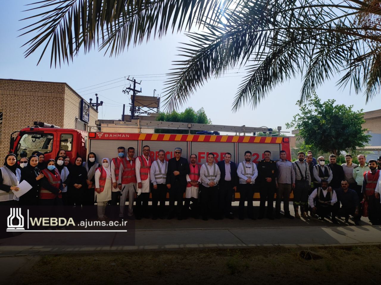همزمان نیز نیروهای آتشنشانی در محل حاضر شده و عملیات اطفای حریق و تخلیه مصدومان فرضی از درب اضطراری بخش عفونی را انجام دادند. سپس، تیم اورژانس ۱۱۵ نسبت به انتقال مصدومان به محل امن و اعزام به مرکز درمانی مجاور جهت ادامه مراقبتها اقدام نمود.
