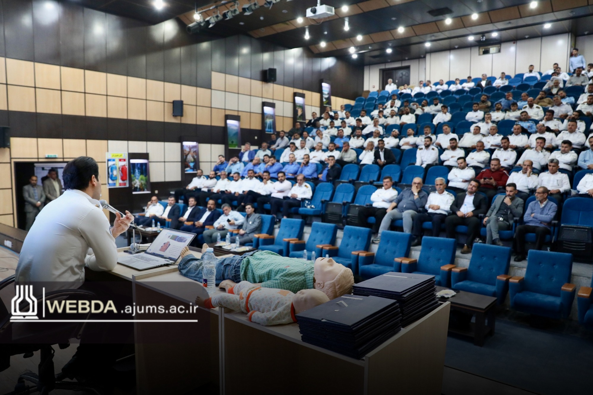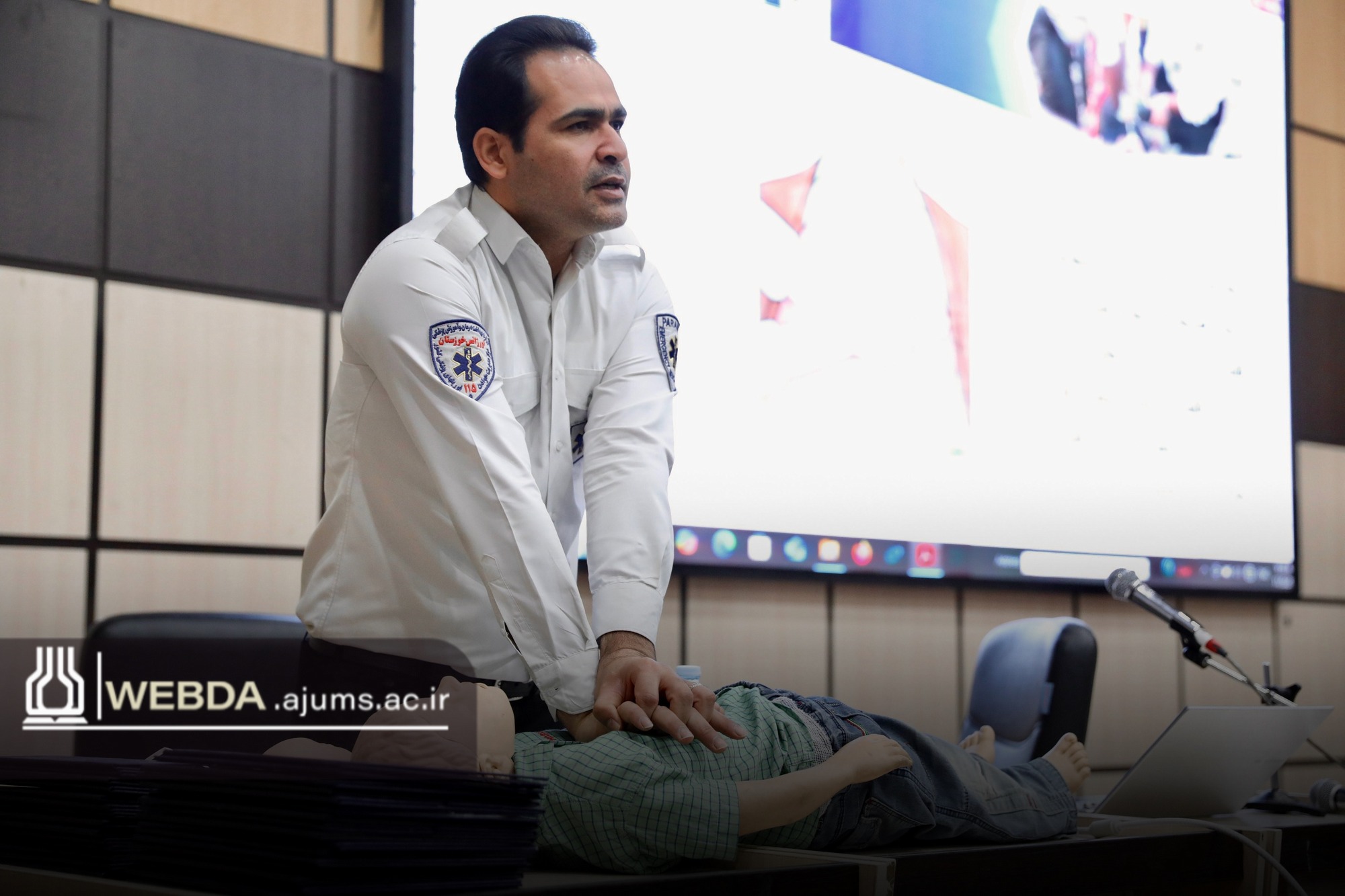 در ادامه مراسم، کارگاه آموزشی امداد و نجات با محوریت احیای قلبی ریوی (CPR) توسط مهندس عبداللهی، مسئول واحد آموزش فوریت‌های پزشکی ویژه نیروهای حفاظت فیزیکی برگزار شد.