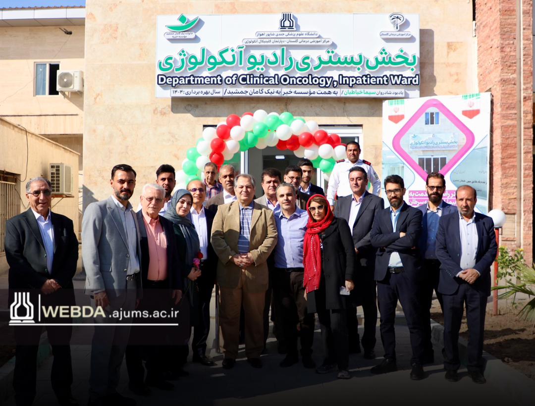 آیین افتتاح این بخش با حضور دکتر حاتم بوستانی، رئیس دانشگاه علوم پزشکی جندی شاپور اهواز، خانم فنایی خیر سلامت، دکتر قدرتالله شاکرینژاد، رئیس سازمان جهاد دانشگاهی خوزستان، دکتر حمیدرضا خلیلی، معاون توسعه مدیریت، منابع و برنامهریزی دانشگاه، دکتر محمد جهانگیر، مدیر سازمانهای مردم نهاد و خیرین سلامت دانشگاه، دکتر اشکان تقیپور، مدیرعامل مؤسسه خیریه، دکتر آرمین جهانگیری بابادی، رئیس بیمارستان گلستان اهواز، دکتر سمیه بیپروا، مدیر امور بینالملل دانشگاه و جمعی از پزشکان، اعضای هیئت علمی دانشگاه، پرستاران و کارکنان بیمارستان برگزار شد. این بخش با مشارکت مؤسسه خیریه نیکگامان جمشید احداث و با هدف گسترش خدمات درمانی استاندارد برای بیماران سرطانی استان طراحی و تجهیز شده است.