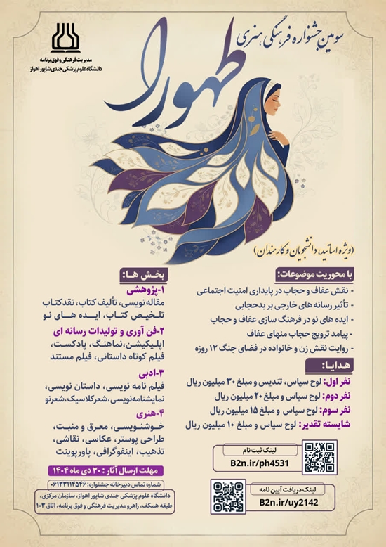 سومین جشنواره فرهنگی هنری طهورا در دانشگاه علوم پزشکی اهواز برگزار می‌شود