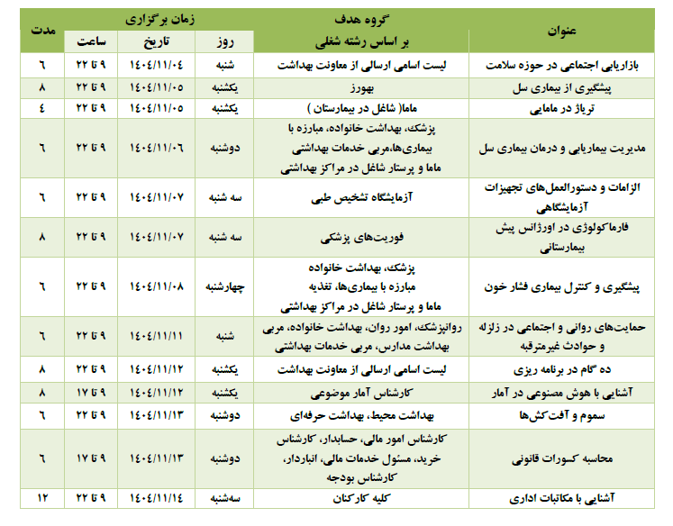 فهرست دورههای آموزشی نیمه اول بهمن 1404 ویژه کارکنان دانشگاه علوم پزشکی اهواز