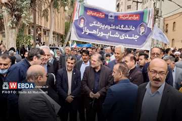 به گزارش وب‌دا خوزستان، خانواده بزرگ دانشگاه علوم پزشکی جندی شاپور اهواز از دورترین نقاط استان تا مرکز خوزستان، هم‌قدم با ملت ایران و هم‌صدا با انقلاب، با حضوری پرشور در راهپیمایی باشکوه یوم‌الله ۲۲ بهمن، بار دیگر جلوه‌ای روشن از وحدت، همبستگی و تعهد حرفه‌ای نظام سلامت را به تصویر کشید.
