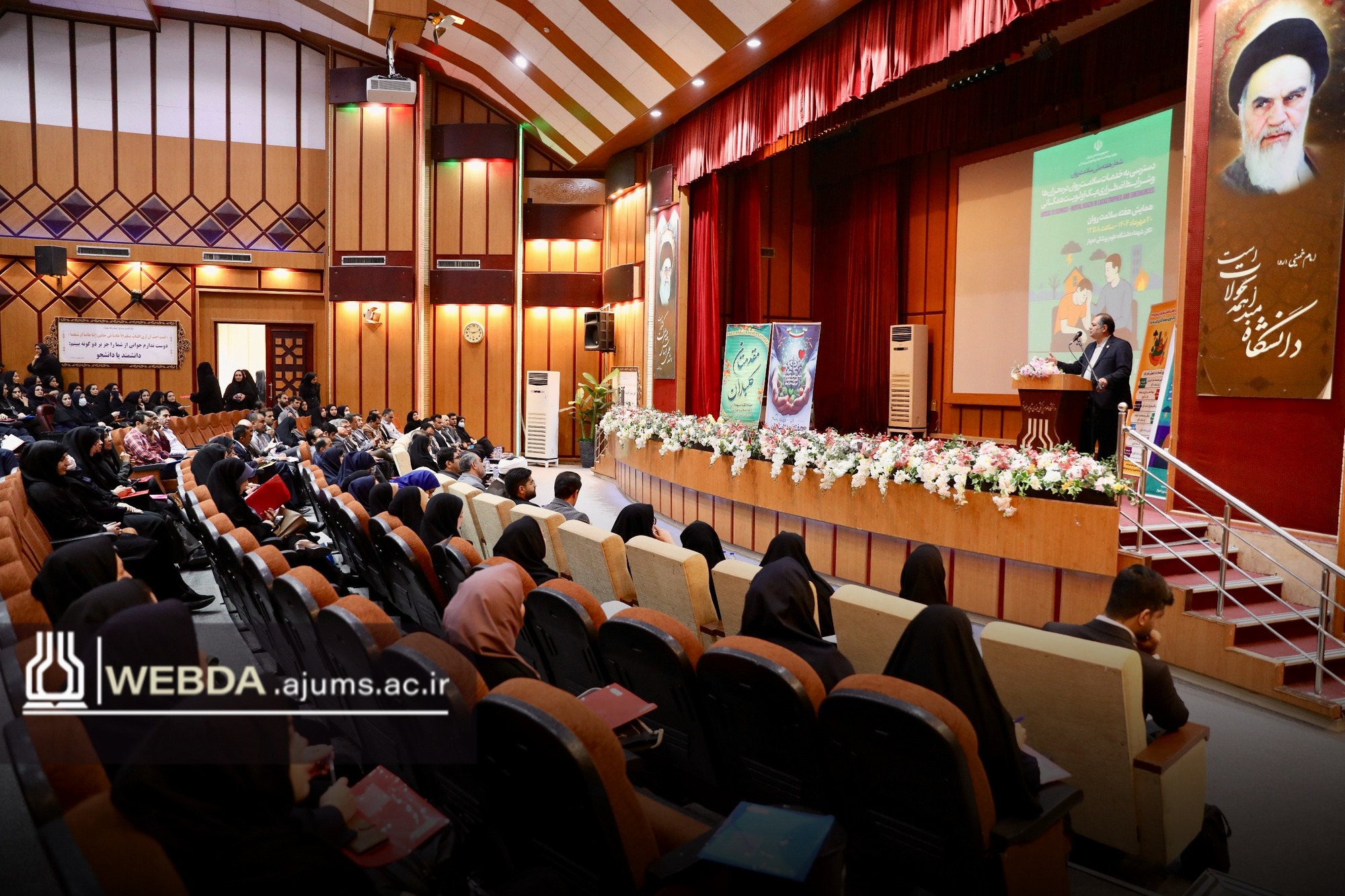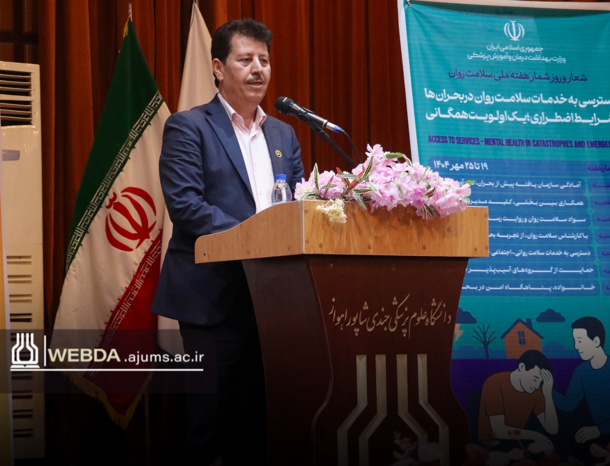 به گزارش وب‌دا خوزستان، همایش هفته سلامت روان با شعار «دسترسی به خدمات سلامت روان در بحران‌ها و شرایط اضطراری؛ یک اولویت همگانی»، امروز یکشنبه 20 مهرماه، با حضور دکتر حبیب‌الله فضل‌الله‌پور، معاون سیاسی اجتماعی استانداری خوزستان، دکتر حاتم بوستانی، رئیس دانشگاه علوم پزشکی اهواز، حجت‌الاسلام‌ والمسلمین آیت عادلی‌نژاد، رئیس دفتر نهاد نمایندگی مقام معظم رهبری در دانشگاه‌های استان، حجت‌الاسلام سیدمحمدمهدی شفیعی، مسئول نهاد نمایندگی مقام معظم رهبری در دانشگاه علوم پزشکی اهواز، دکتر مهرداد شریفی، معاون بهداشت دانشگاه و رئیس مرکز بهداشت استان، دکتر ناصر علی‌فر، مدیرکل آموزش و پرورش خوزستان، مهندس زینب پارسافخر، مدیرکل امور بانوان استانداری خوزستان و کارشناسان سلامت روان، جمعی از اساتید، مدیران حوزه بهداشت و آموزش و پرورش و جمع کثیری از مشاوران مدارس استان خوزستان، در تالار شهدای دانشگاه برگزار شد.