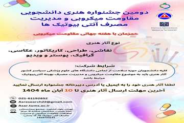 دومین جشنواره هنری دانشجویی مقاومت میکروبی و مدیریت مصرف آنتیبیوتیکها برگزار میشود