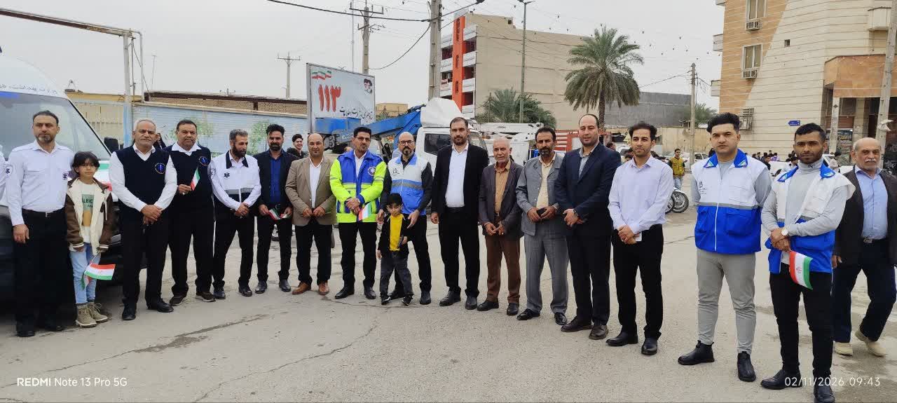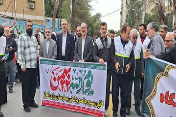 نظام سلامت خوزستان هم‌قدم با ملت و هم‌صدا با انقلاب در راهپیمایی ۲۲ بهمن