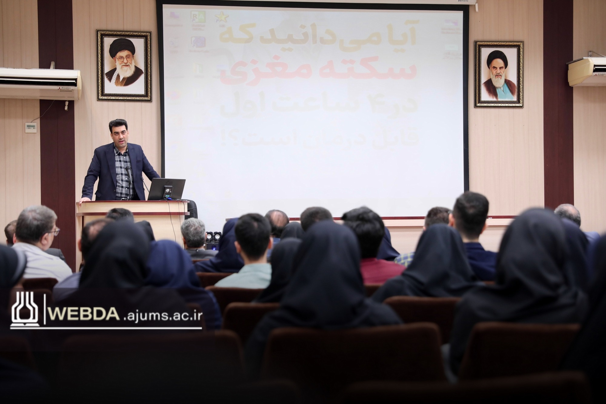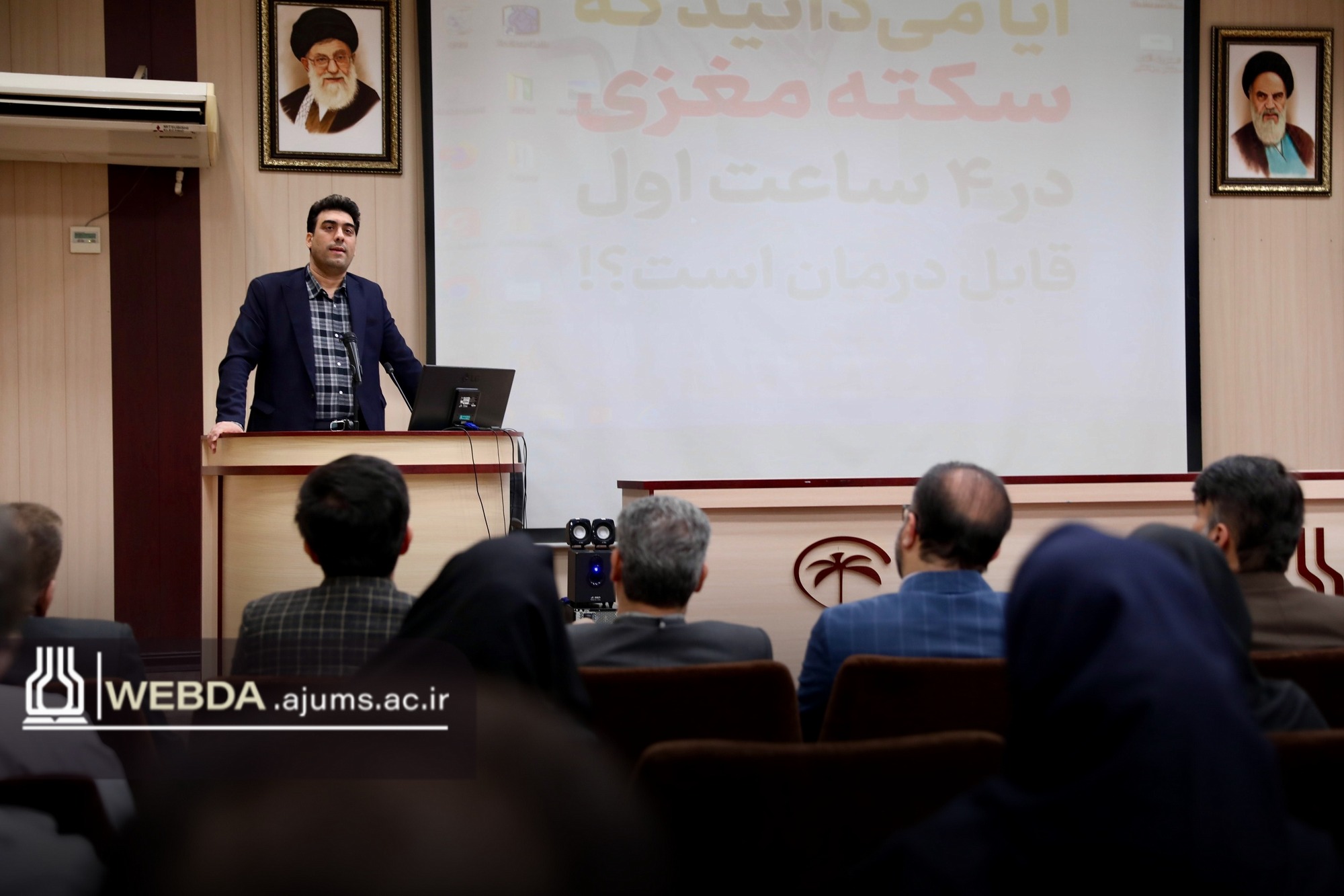 به گزارش وب‌دا خوزستان، امروز چهارشنبه ۷ آبان‌ماه، همایش روز جهانی سکته مغزی (استروک) با هدف افزایش آگاهی عمومی و تخصصی درباره پیشگیری، تشخیص به‌موقع و درمان سریع سکته مغزی، با حضور دکتر حاتم بوستانی، رئیس دانشگاه علوم پزشکی جندی شاپور اهواز، دکتر میثم معزی، معاون درمان دانشگاه، حجت‌الاسلام سید محمدمهدی شفیعی، مسئول نهاد نمایندگی مقام معظم رهبری در دانشگاه، دکتر مهران احمدی بلوطکی، رئیس اورژانس پیش‌بیمارستانی و مدیریت حوادث دانشگاه، دکتر آرمین جهانگیری بابادی، رئیس بیمارستان گلستان اهواز، دکتر شهرام رفیع، فوکال پوینت سکته مغزی دانشگاه، دکتر داود کاشی‌پزها، مدیر گروه نورولوژی دانشگاه، جمعی از اساتید، اعضای هیئت علمی، پزشکان، پرستاران، مدیران شبکه‌های بهداشت و درمان، دستیاران و دانشجویان در سالن آمفی‌تئاتر شهید دکتر شریف‌پور بیمارستان گلستان اهواز برگزار شد.